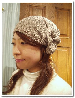 花のように開いたモチーフがとても女性らしい印象を与えてくれる、ちょっとレトロな帽子。