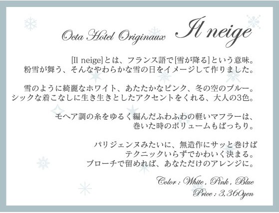Octa Hotel とSouvenir のオリジナルマフラー 「イルネージュ」が出来上がりました。