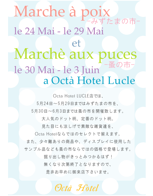 Octa Hotel Lucle店では、5月24日~5月29日まではみずたまの市を、