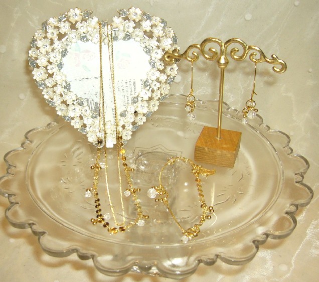 流れ星をイメージしたエレガントなネックレス、ブレスレットとピアス。