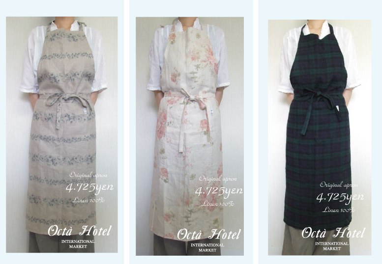 Octa Hotel オリジナル、リネンエプロンができました。 麻のシャリ感が心地よいエプロンです。