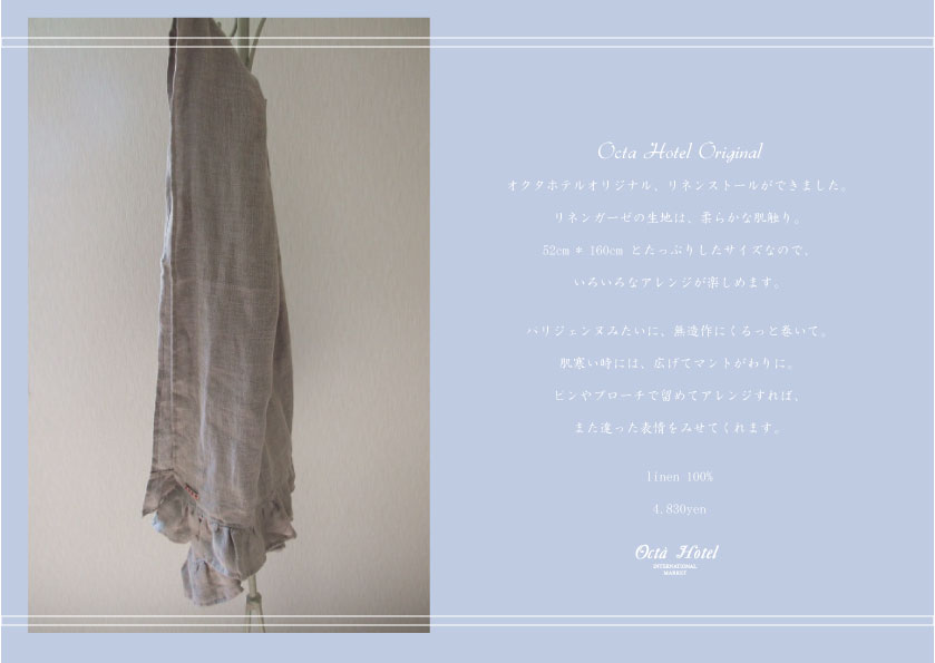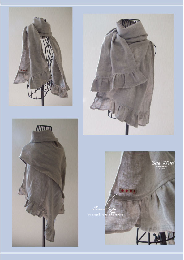 たっぷりとリネンの生地を使い、ポイントにフランス製リネンテープをつけました。
