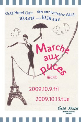 オクタホテルクレア店4周年を記念し、10月9日~10月13日の5日間、パリの蚤の市をイメージしたオクタホテルの蚤の市を開催いたします!サンプル品や、訳あり商品などなど、破格のお値段で登場!